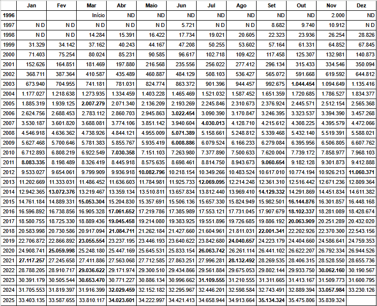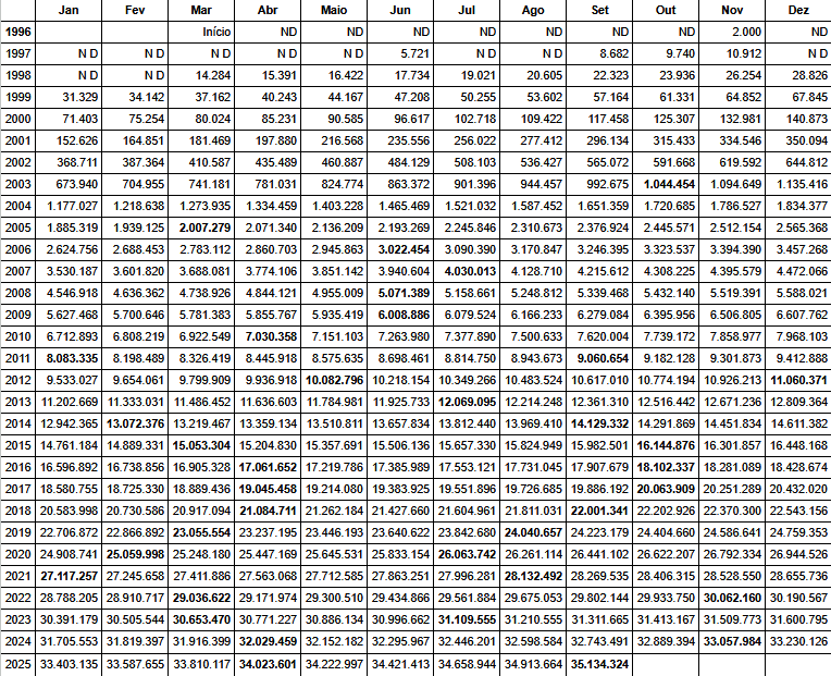 Até março de 2000 os números são do contador de acessos publicados no Golfinho Impresso.